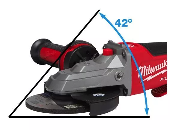 - Flat gear head design – allows user working within acute angles down to 42°